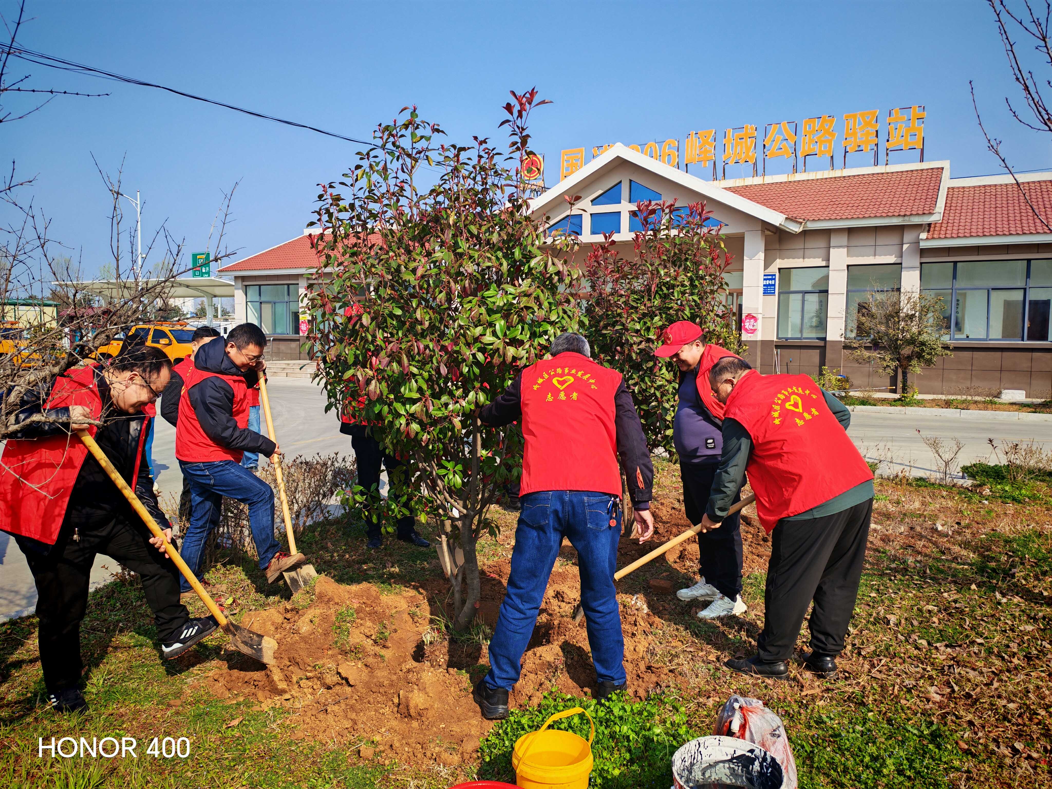 在公路驿站,党员干部分工协作,迅速投入到植树添绿行动中。大家手持铁锹、水桶,精心补植红叶石楠、小叶女贞等苗木,扶苗、培土、浇水,每一道工序都认真细致,为驿站增添了勃勃生机,也为公路沿线筑起了一道生态防护屏障。