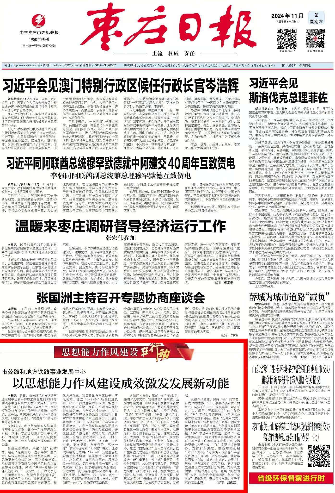 紧扣能力提升,赋能“专”的水平,锤炼“人享其行、物畅其流”的本领。坚持学思用贯通,积极培育和发展公路新质生产力。深化学习调研,着力培养新质公路人;成立“路畅人和”、“早”论道、“智路”等学习小组,“干部上讲台”11次,举办养护工程现场观摩会3次,确定调研课题21项,选派16名干部到“枣解决·枣满意”平台、“第一书记”、重点项目建设一线壮筋骨,形成以讲促学、以研促行、以学促干的生动局面。注重绿色低碳,大力推广公路“四新技术”。成立科技创新工作室、劳模工匠创新工作室、枣庄市路域固废资源化利用技术工程研究中心,建立“四新技术”应用工作机制,推广应用灌入式路面、橡胶和钢渣沥青混合料等“四新技术”8项,让普通国省道建设含“碳”量更少,含“绿”量更足。坚持数智赋能,加快建设智慧公路。智慧路网监控平台136处监控187个摄像头,“智慧应急”24小时值班值守,加快推进公路养护、路长制、安全管理、积水预警、智慧工地等16个场景的深度应用,探索推动无人机巡查,让公路养护更智慧、更精准。 紧扣作风转变,保持“快”的节奏,养成“时时放心不下、事事落实到位”的风气。坚持干在当下、成在实处、紧在平时,大力倡导“严真细实快”的工作作风。“早”字当头奔跑开局。主动适应公路养护管理新路径,按照“近期可实施、长期有储备、定期可滚动”思路,健全完善三年养护工程项目库,每年提前谋划不低于100公里的路面改造和修复养护工程。“快”字当先冲刺攻坚。坚持“一张清单抓到底”,将项目前期手续颗粒化38项,项目施工许可证办理由常规40天提升至最快8天完成。“优”字至上提升服务。对标群众满意,高质高效处理“12345”热线、“枣解决·枣满意”平台交办事项1332项,热线办结率、满意率位列第一方阵;对标企业满意,开展大件运输“护航2024”专项行动,提供涉路工程建设技术支持服务32次。对标职工满意,实施差异化考核,开展“揭榜领题”5个,实行月度实绩晾晒、年度“背对背”多维测评,营造风清气正、实干实惠的政治生态。(记者 刘振江)